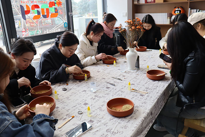 活動現(xiàn)場,專業(yè)老師給大家講解手工藝術品的制作方法。大家興致勃勃、迫不及待地拿起制作工具,準備在各自的藝術品一展身手。現(xiàn)場陣陣的歡聲笑語,氣氛十分溫馨,大家看著自己的勞動成果,成就感油然而生。